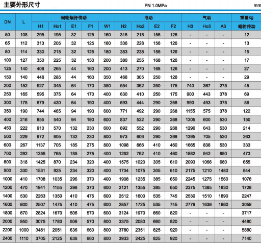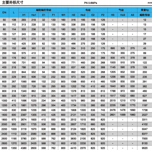 下列圖中的閥門結構長度:DN<2000按ISO5752的13系列;DN≥2000按ISO5752的41系列。