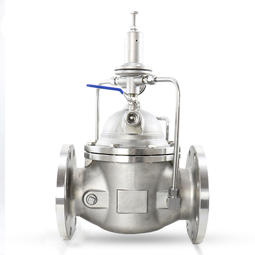 2、泄壓主要安裝于泄水旁路,可保證主閥上游于導(dǎo)閥設(shè)定值以下,防止管路高壓或突然高壓對(duì)管路及設(shè)備的損壞。